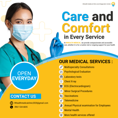Whealth Medical Clinic is committed to delivering professional, patient-centered healthcare in a safe and comfortable environment. Our team ensures quality medical care tailored to your needs.Our Services: ✔ General Consultation ✔ Psychological Evaluation ✔ Laboratory Tests ✔ Chest X-ray ✔ ECG (Electrocardiogram) ✔ Minor Surgical Procedures ✔ Vaccinations ✔ Telemedicine ✔ Annual Physical Examination ✔ Mental Health Services ✔ And...Read More