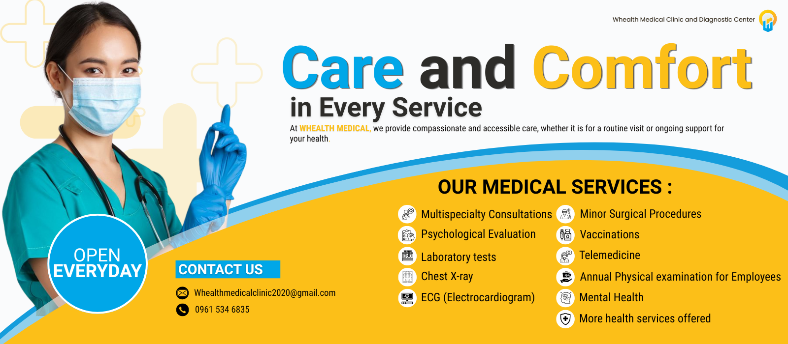 We are open daily to provide accessible and dependable medical services for you and your family. Visit Whealth Medical Clinic for trusted and quality care!